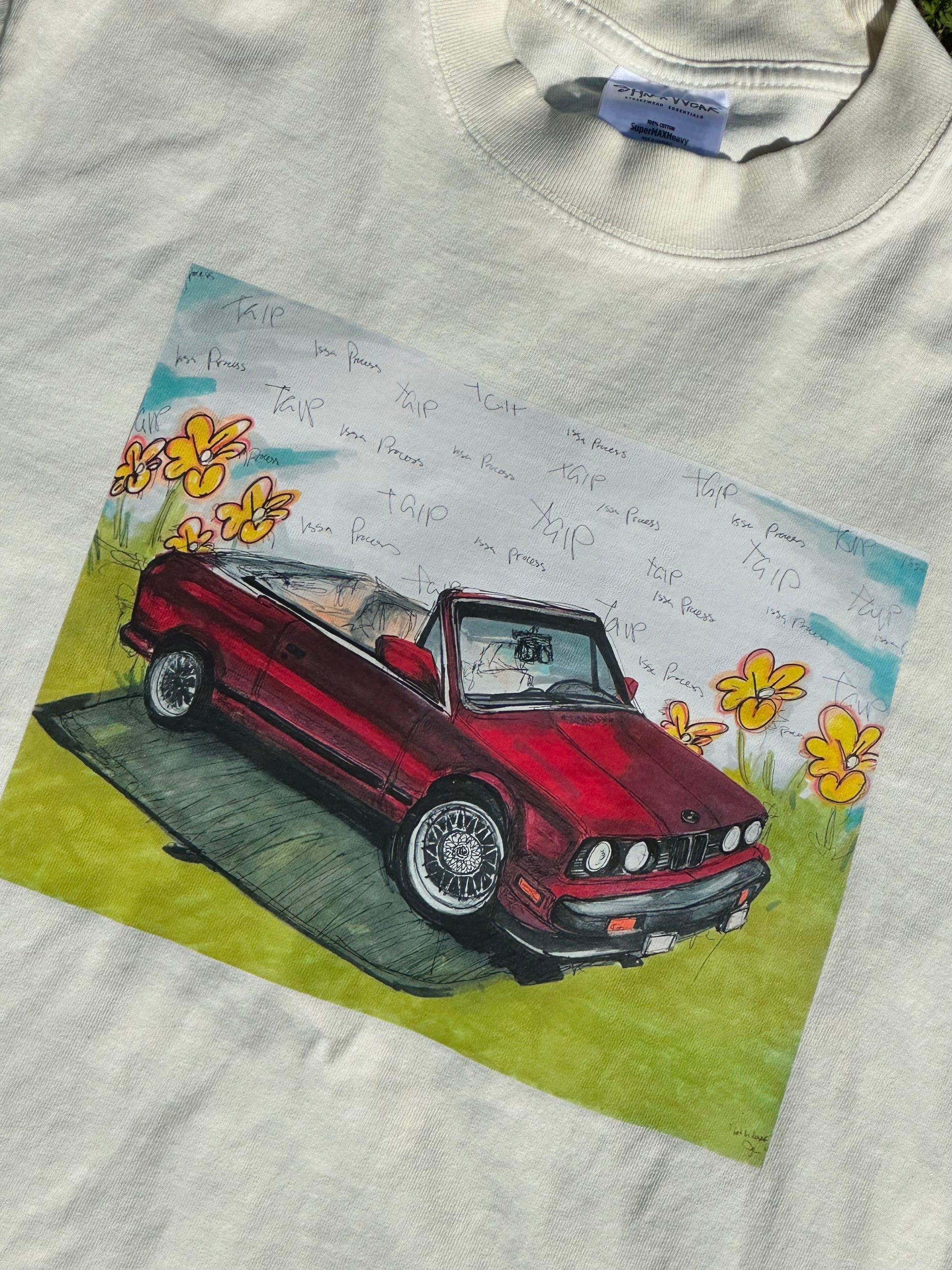 Hand-drawn from my very first car — a red drop-top BMW that carried dreams, prayers, and long rides through the Eastside of Atlanta streets.
